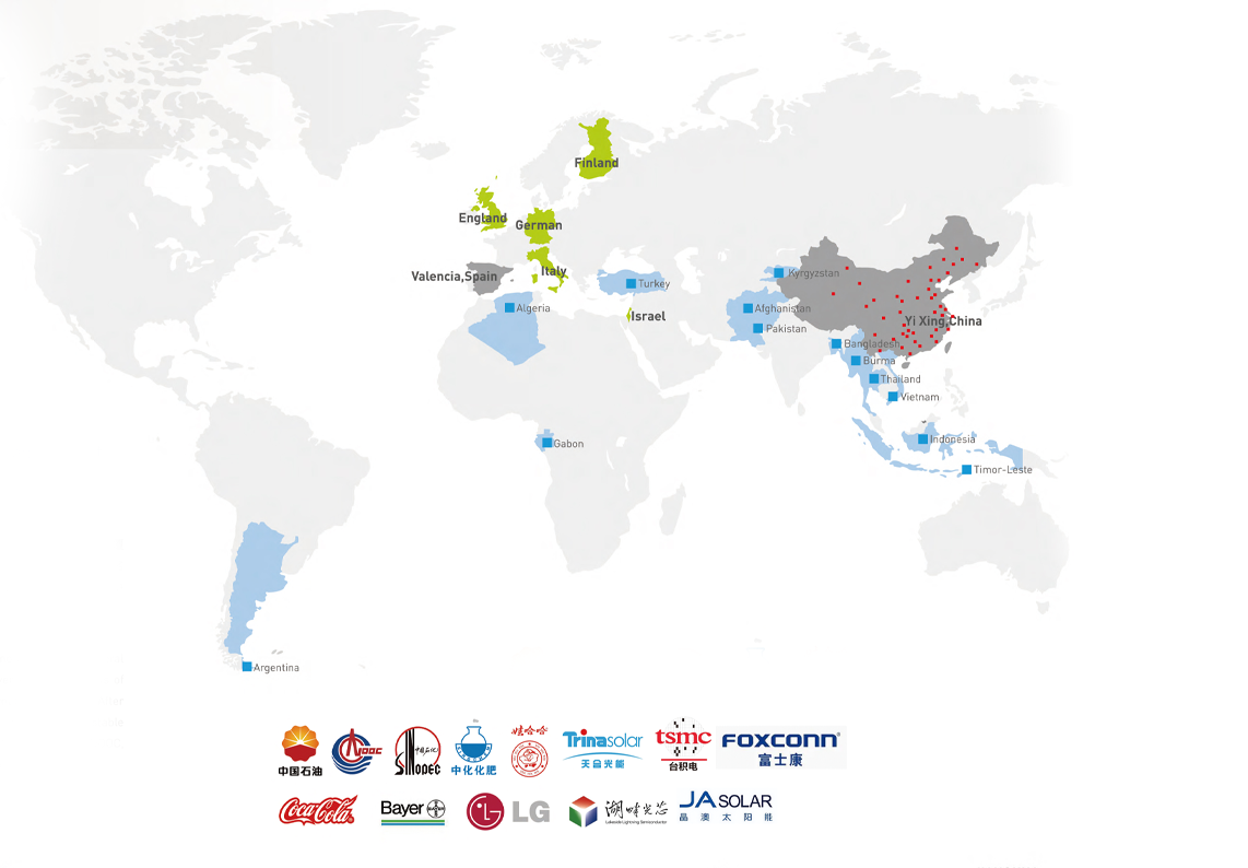 江華集團業務涉及石油化工、重工業、冶金礦業、電力、制藥、新能源等各行業,業務遍及全國各大城市,并已承接了20多個海外環保治理項目,遍及孟加拉、土耳其、俄羅斯緬甸等國,同時開發了越南、印度、泰國、斯里蘭卡等國際環保市場,長期與美國、法國芬蘭、瑞典、德國、日本、韓國、以色列等國外知名環保公司保持緊密合作關系。